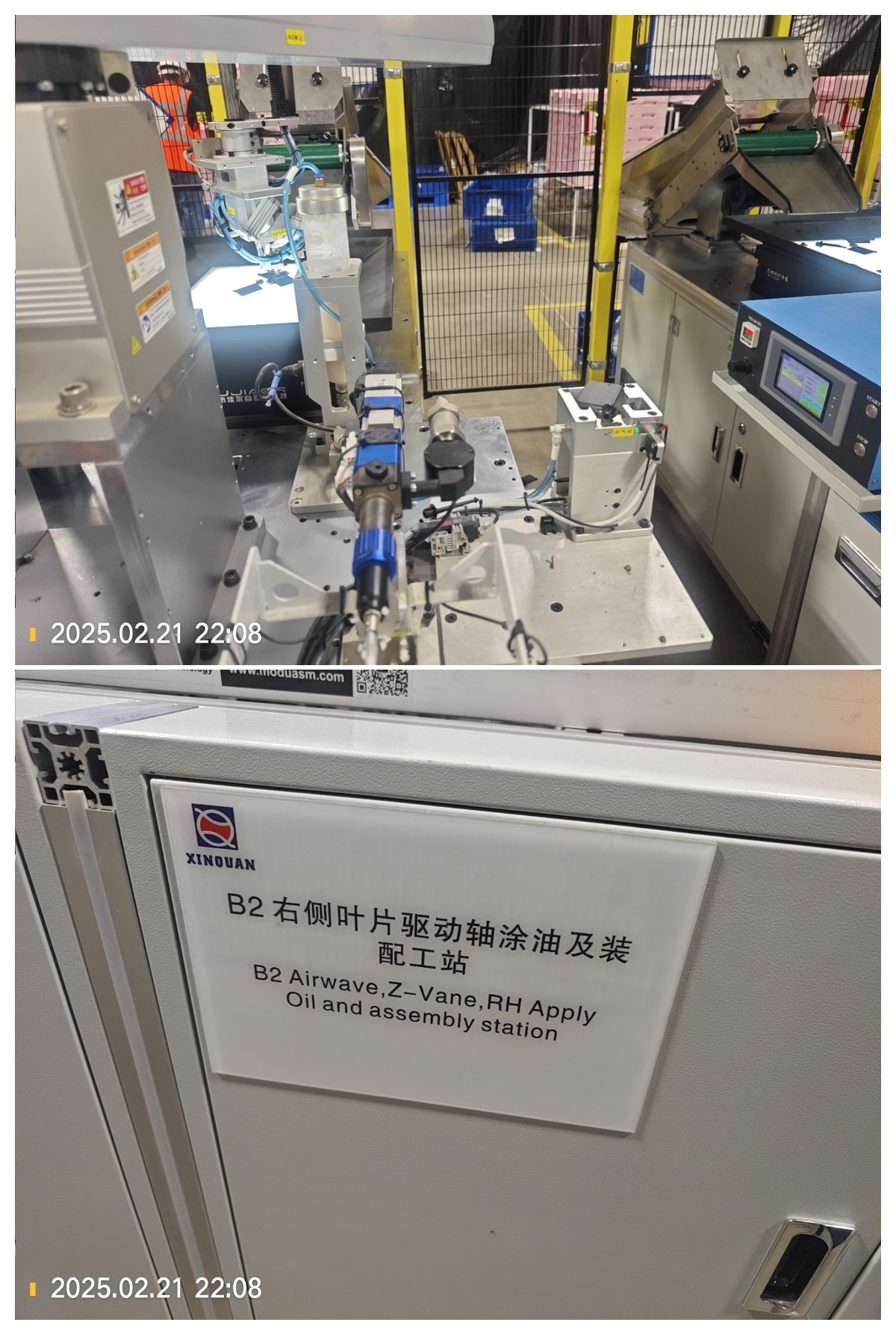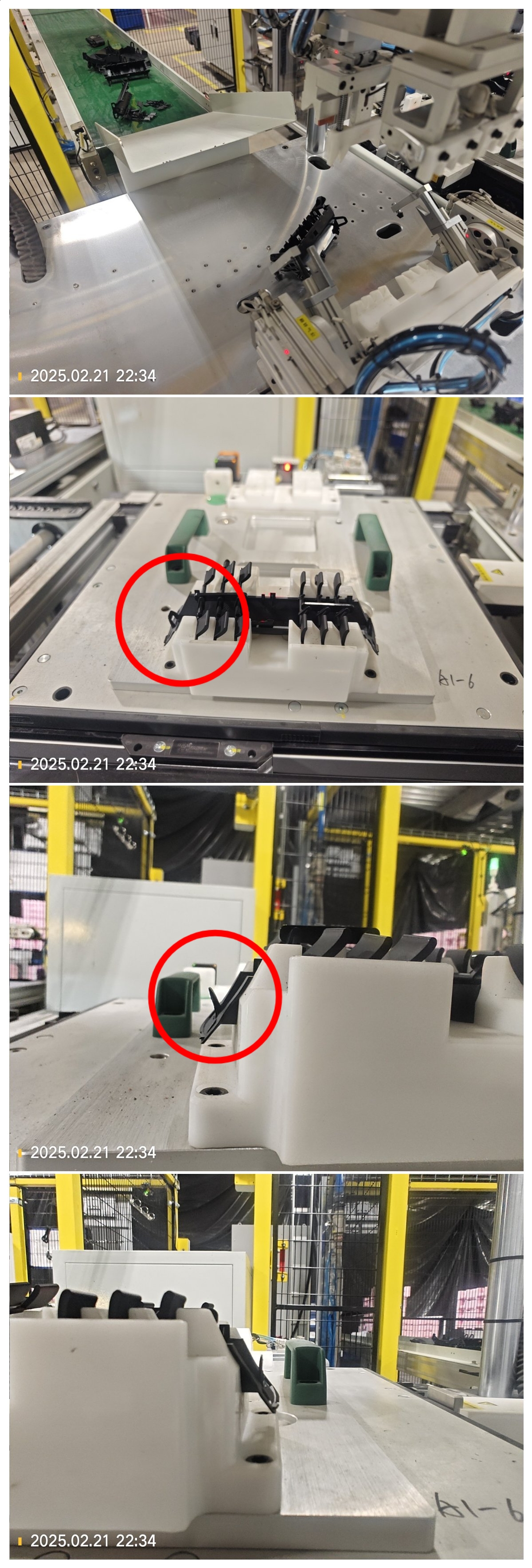 B转C,不良品出口,有时会有叶片因为装配不到位,而没能被机械手搬到皮带线上。