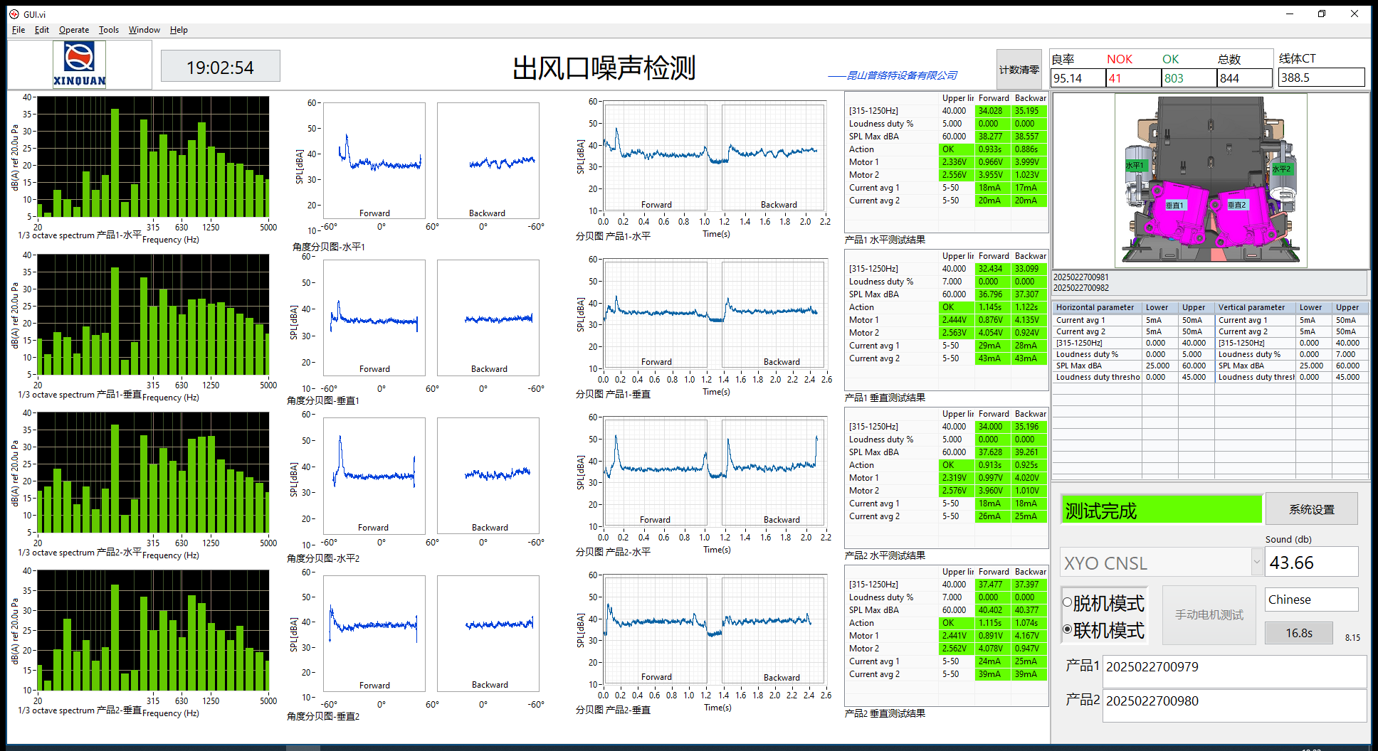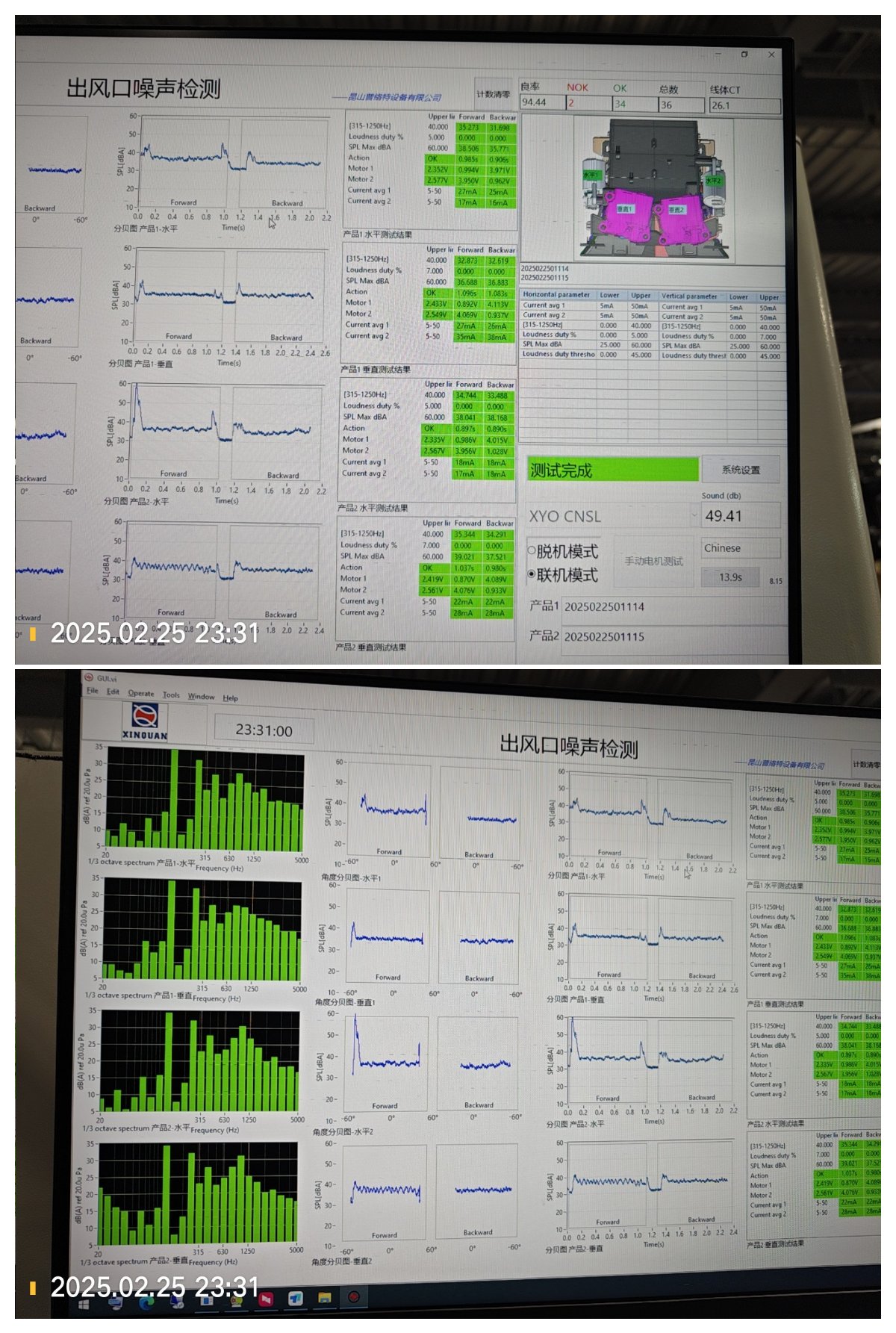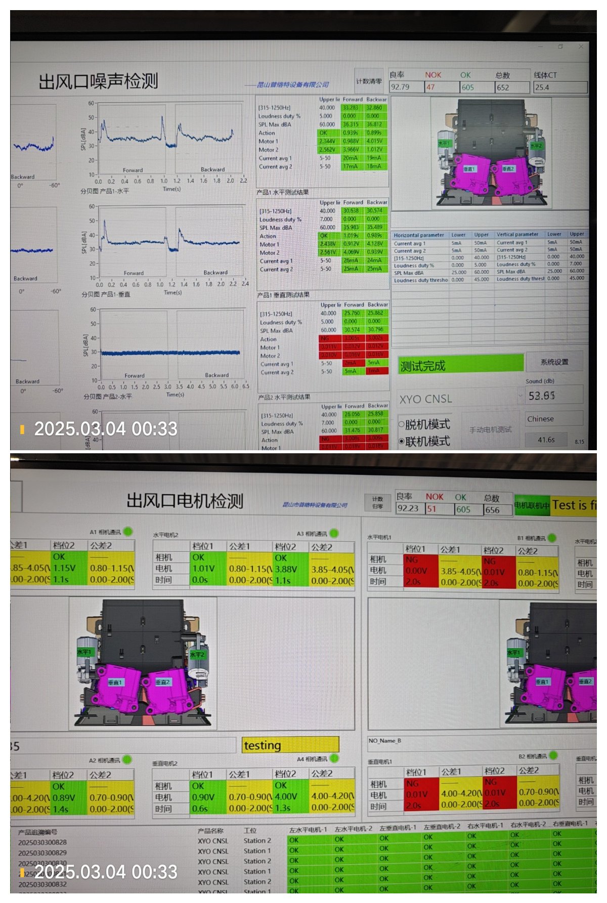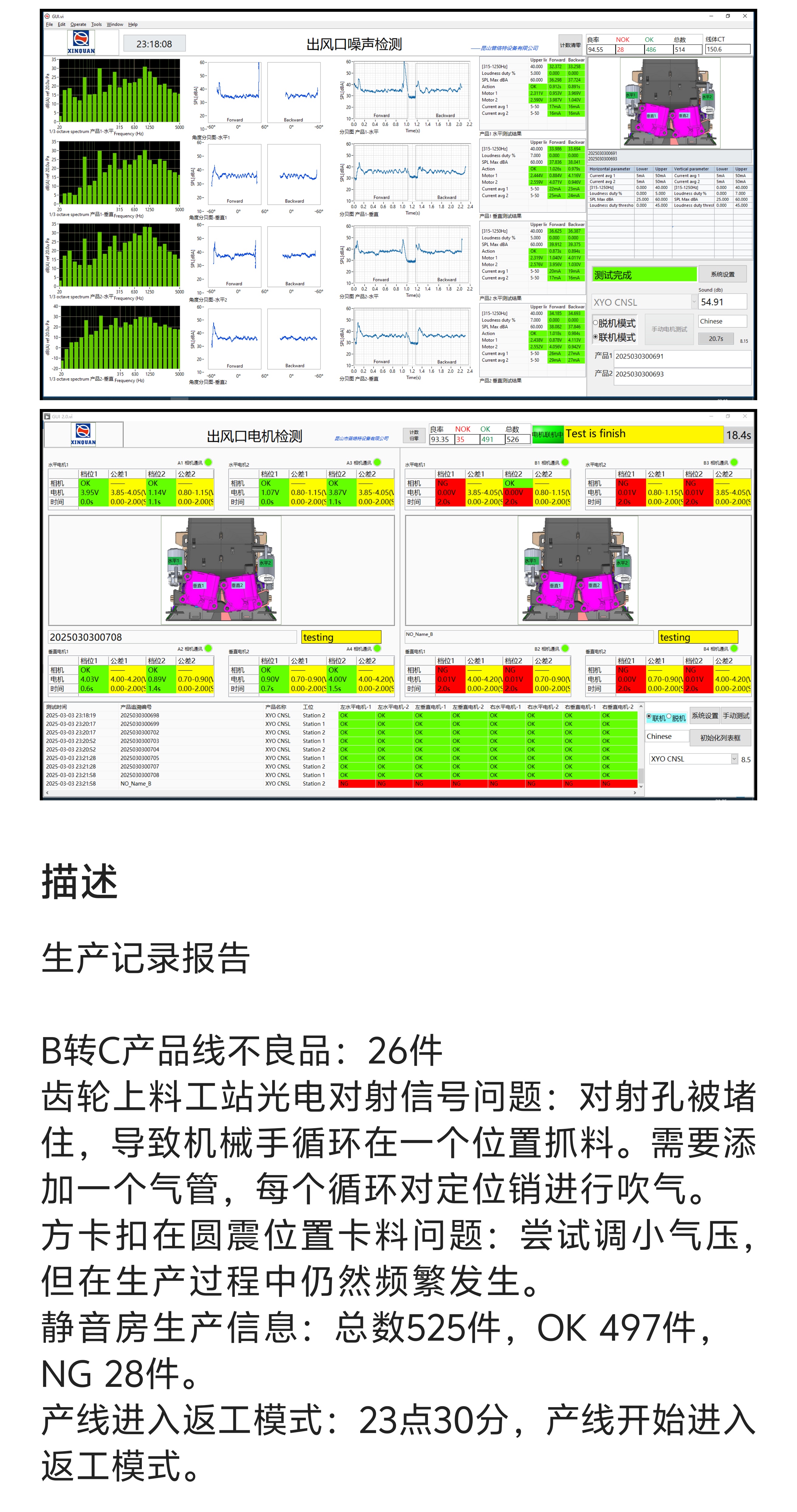 4. 静音房生产信息:总数525件,OK 497件,NG 28件。