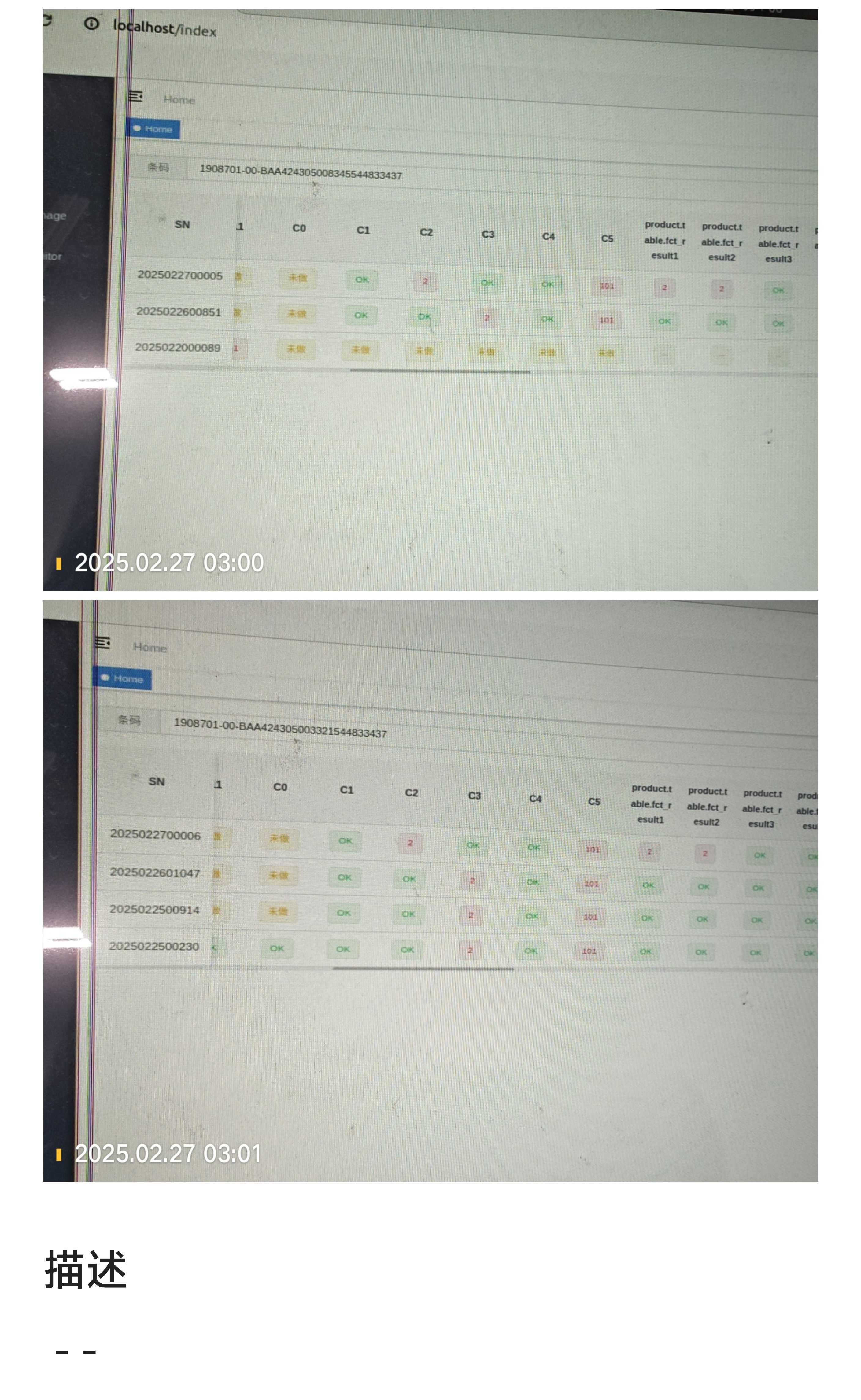 两件不合格产品的查询讯息 |