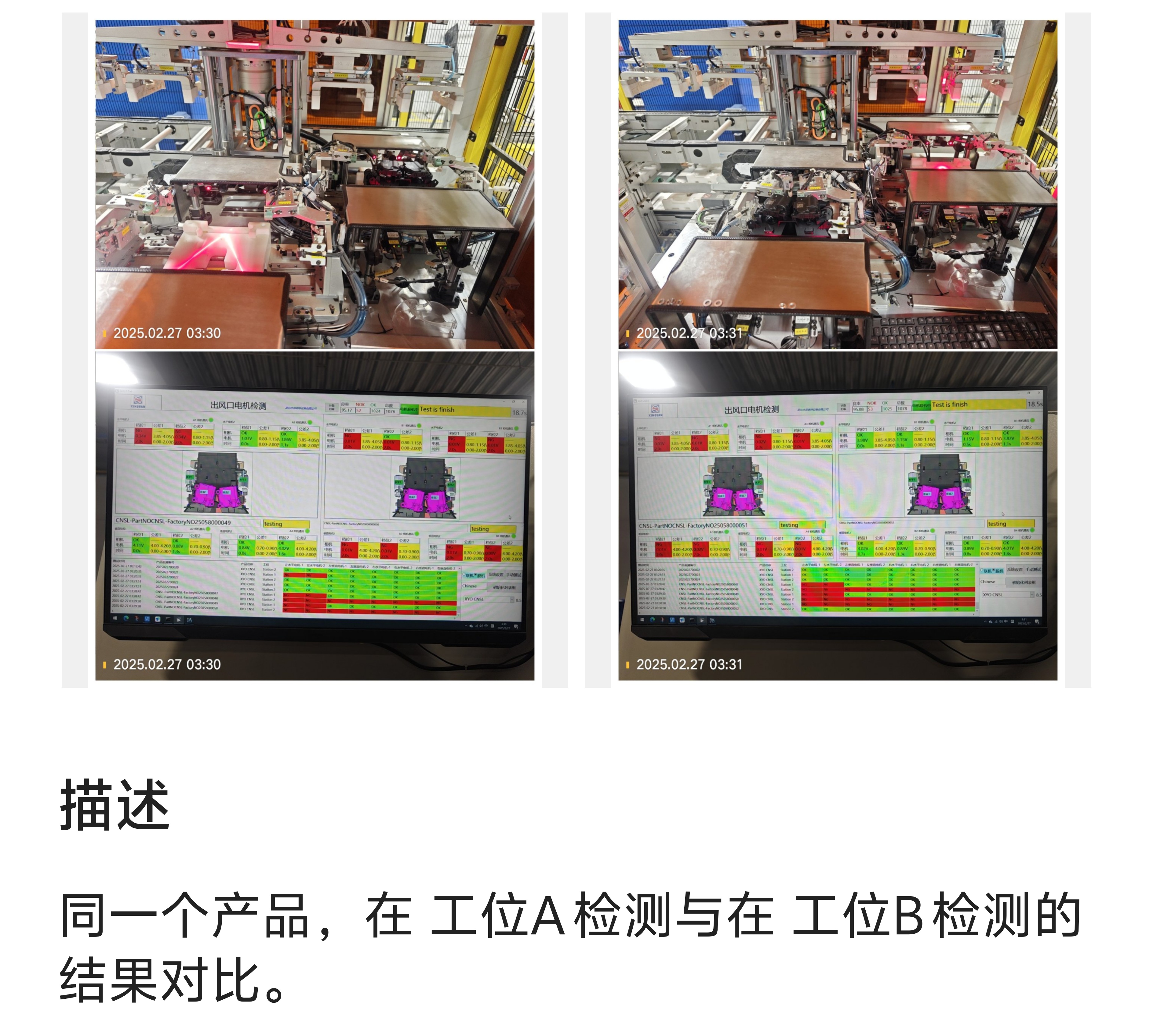 同一产品,在不同位置的 检测结果 |