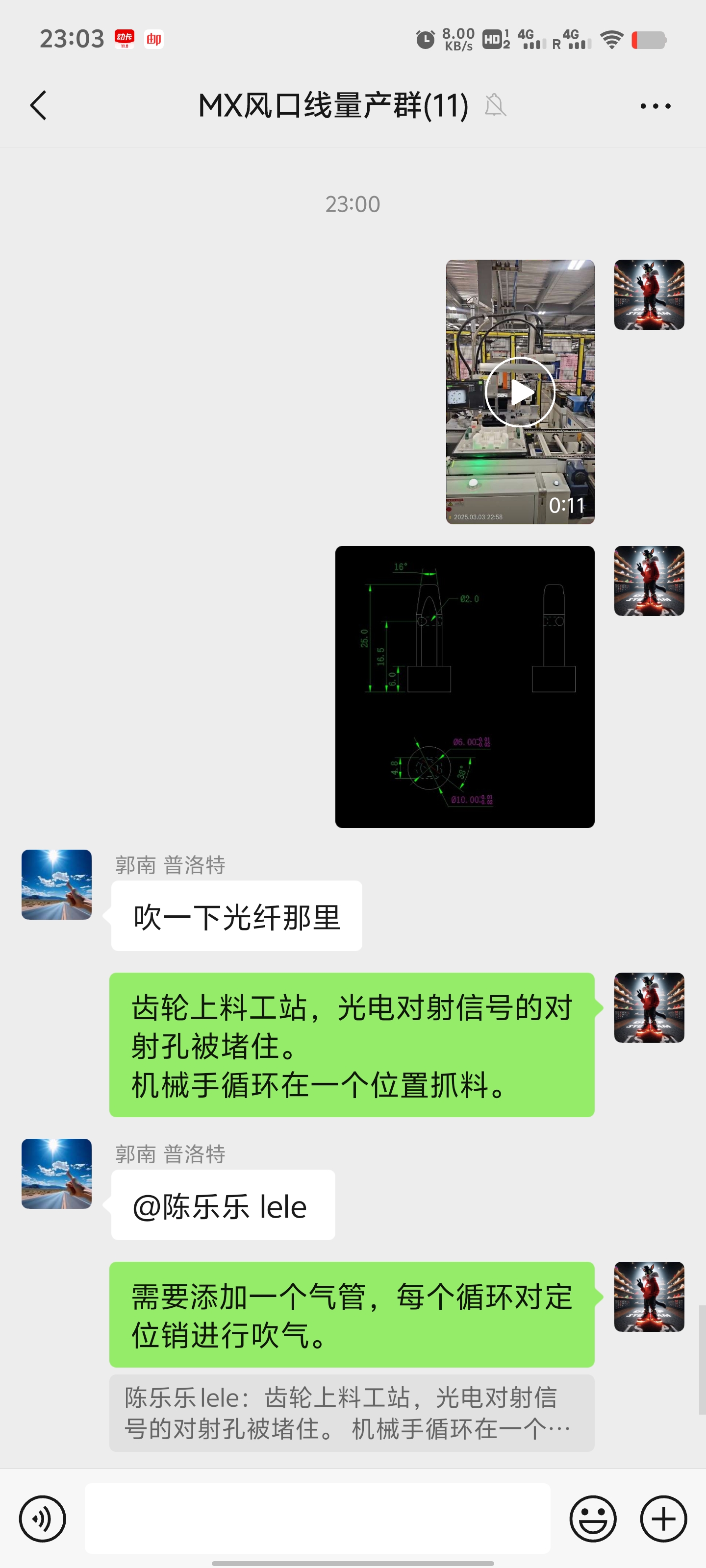 2. 齿轮上料工站光电对射信号问题:对射孔被堵住,导致机械手循环在一个位置抓料。需要添加一个气管,每个循环对定位销进行吹气。