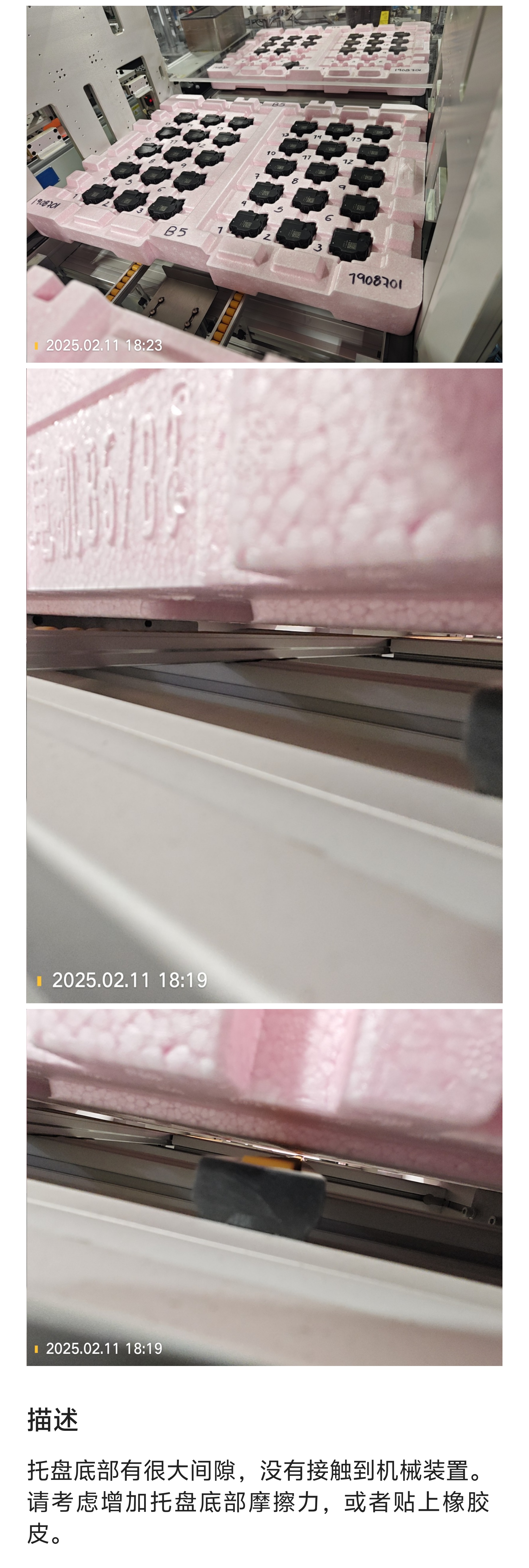 请考虑增加托盘底部摩擦力,或者贴上橡胶皮。 |