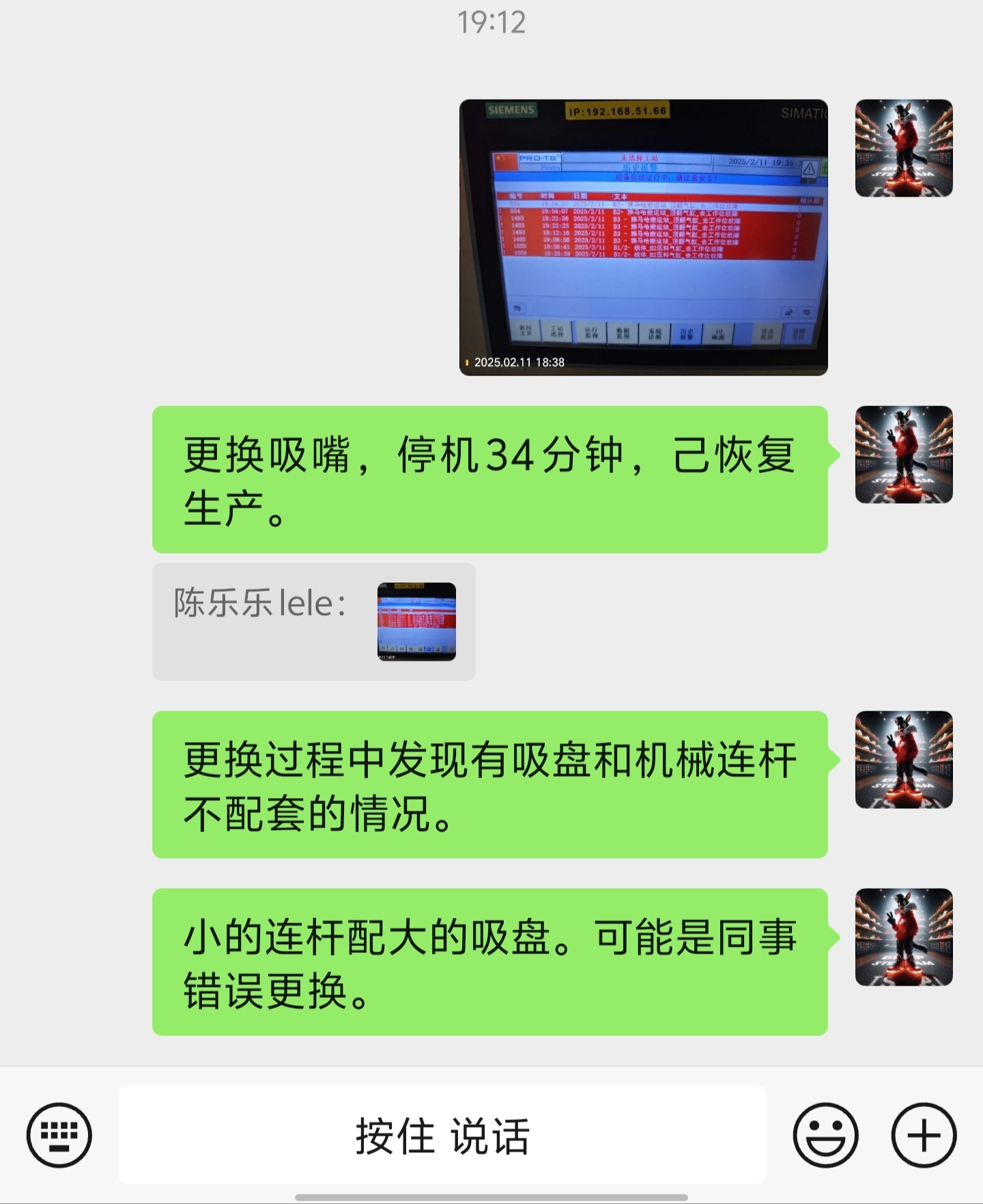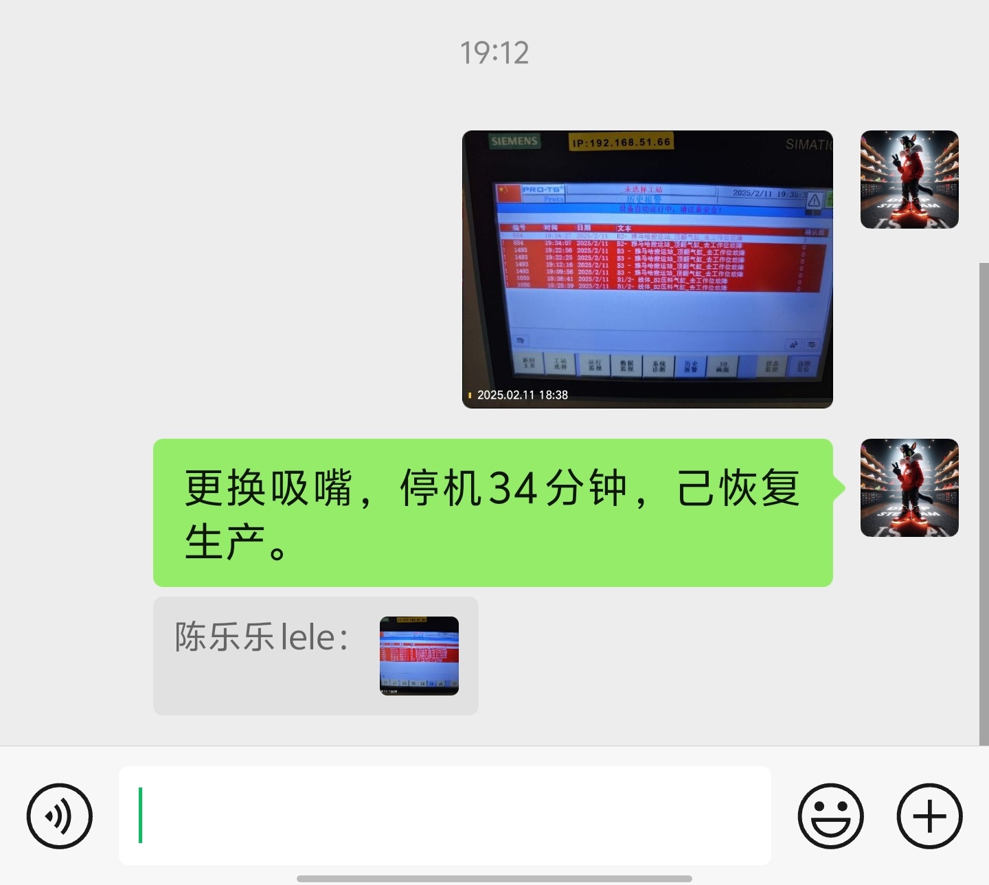 更换吸嘴,停机34分钟,己恢复生产。 |