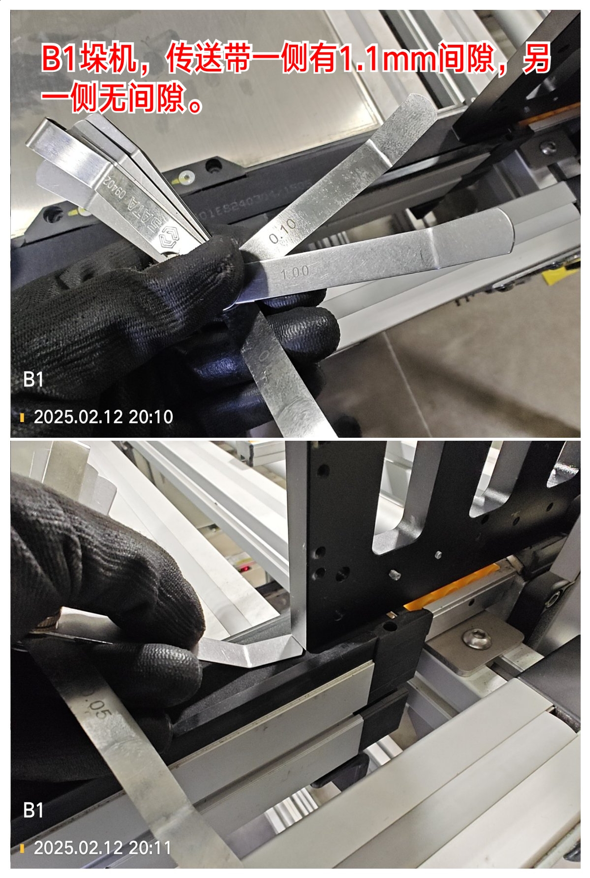 B1垛机,传送带一侧有1.1mm间隙,另一侧无间隙。 |