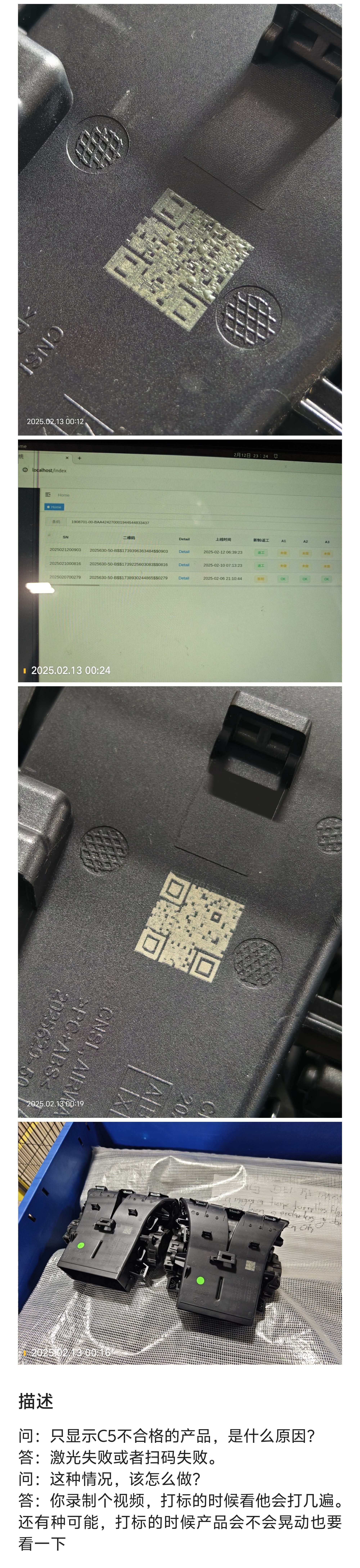 答:你录制个视频,打标的时候看他会打几遍。还有种可能,打标的时候产品会不会晃动也要看一下 |